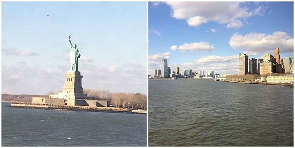 在渡輪上看到的自由女神像與曼哈頓天際線
